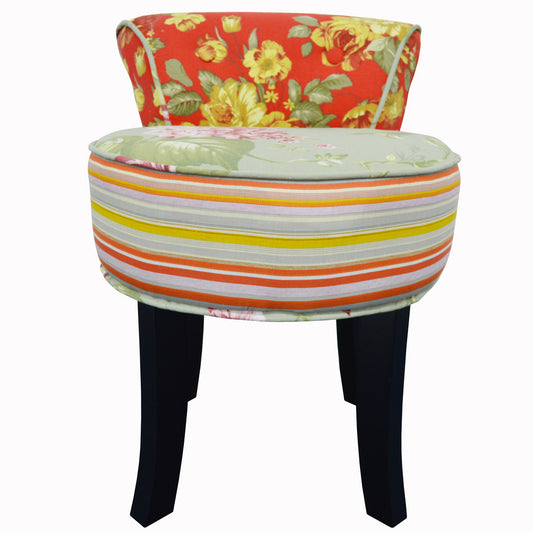 ROSES - Shabby Chic Padded Stool / Low Back Chair with Wood Legs - Multi-coloured