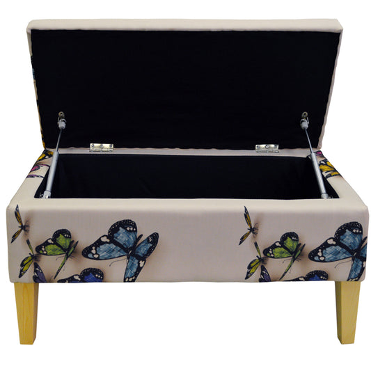 BUTTERFLY - Storage Ottoman Stool / Blanket Box / Padded Trunk - Cream / Multi