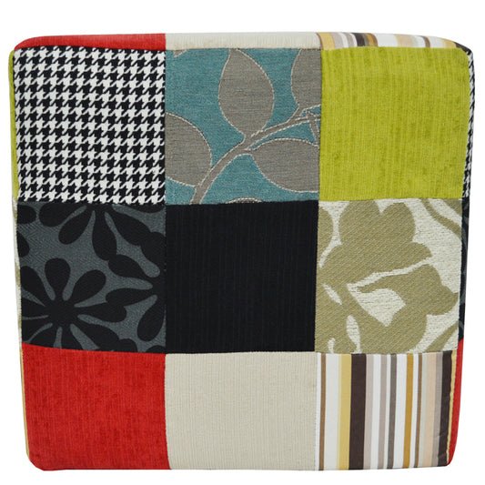 PLUSH PATCHWORK - Cube Stool / Pouffe - Blue / Green / Red