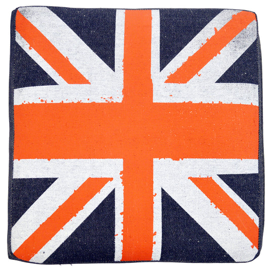 UNION JACK - Square Flag Padded Storage Pouffe Stool - Blue / Red / Grey