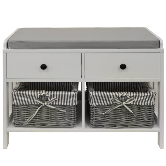 DOUBLE - Storage / Shoe Storage Bench with Two Drawers and Baskets - White / Grey