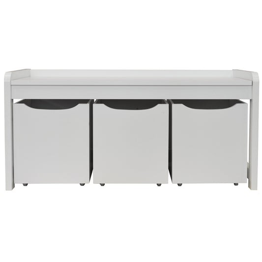 NEWTON - Hallway / Shoe / Toy / Bedroom Storage Bench with 3 Drawers - White