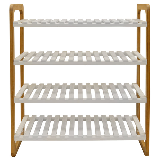 SLATS - 4 Shelf 16 Pair Shoe Storage Rack - White / Natural