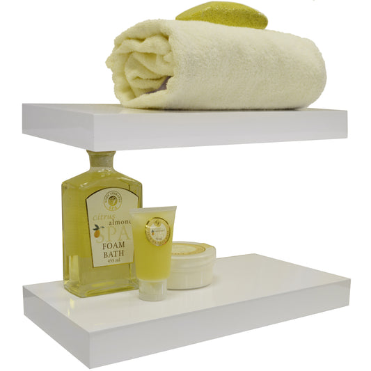 Wall Mounted 40cm Floating Shelf - Pack of Two - White