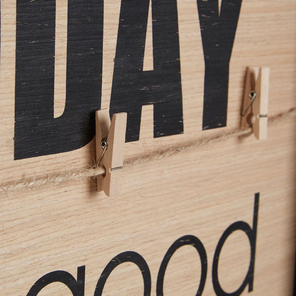 This quirky wall mounted photo frame is ideal for pegging those images that made you smile so that TODAY IS A GOOD DAY! There are six pegs to hold photos, notes, ticket stubs - anything that makes you happy, gives you motivation or inspiration. Ideal as a gift too, either give empty OR fill with their favourite things.