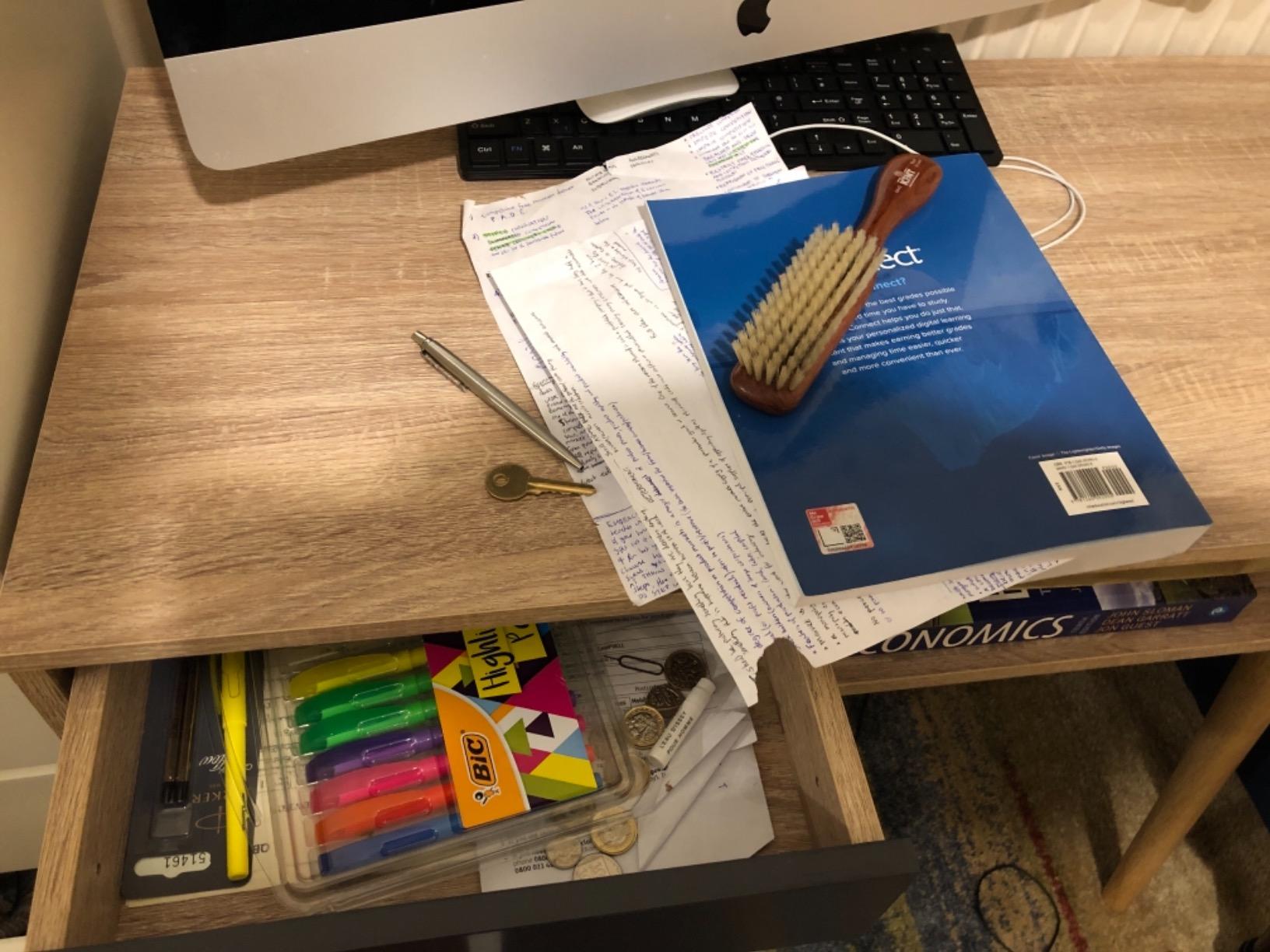 natalie roe Sorry don't have a picture with the draw in! I have been so impressed with the quality of this desk. Looks lovely in my son's room.