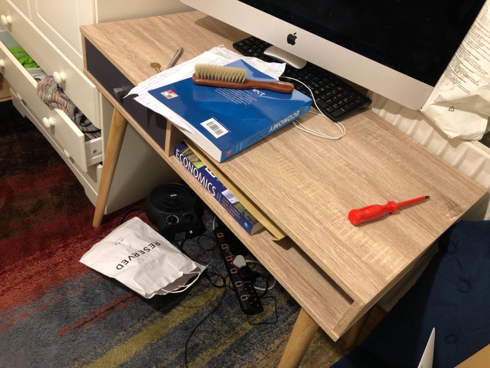 Aishi Finally set up desk. Delivered promptly. Good instructions. Assembled myself in an hour